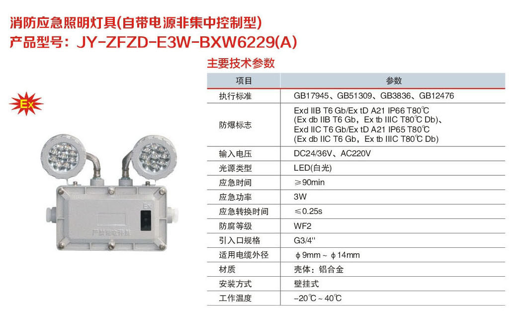 JY-ZFZD-E3W-BXW6229(A)自帶電源非集中控制型消防應急照明燈具