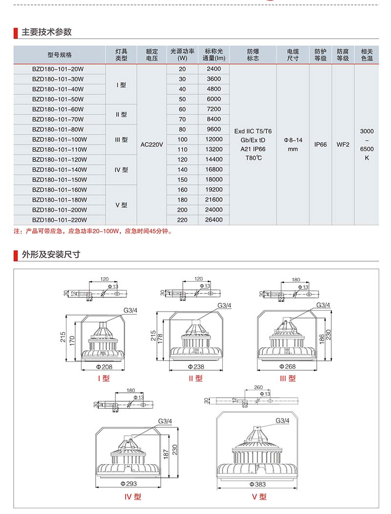 以下是此款LED防爆燈的實物展示圖以及參數圖: