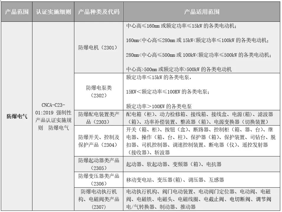 市場監(jiān)管總局在發(fā)布將防爆電氣轉為3C認證公告的同時,也發(fā)布了一份產品目錄,明確規(guī)定了屬于3C認證范疇的防爆電氣產品。